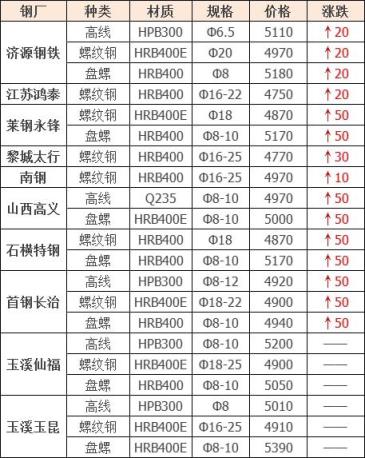 上調(diào)15家,占比71.5%,調(diào)價幅度10-50元/噸,